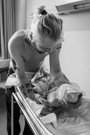 Na een kwartiertje vertrok je met papa naar de kraamafdeling voor 'skinning', terwijl ik nog moest worden toegenaaid en even moest recupereren.